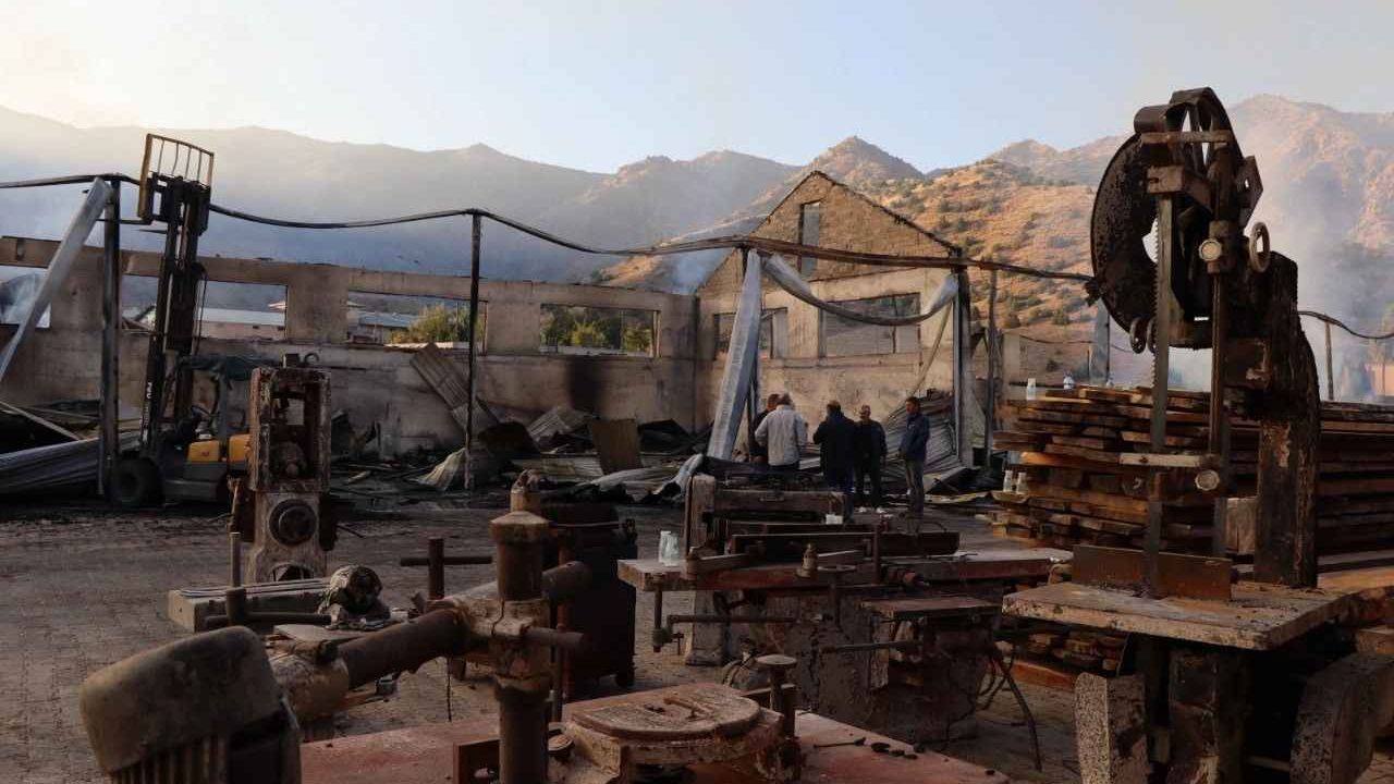 Oltu Ticaret Odası Başkanı Baki Karacaya ait Kereste Fabrikası nedeni belli olmayan yangından dolayı...