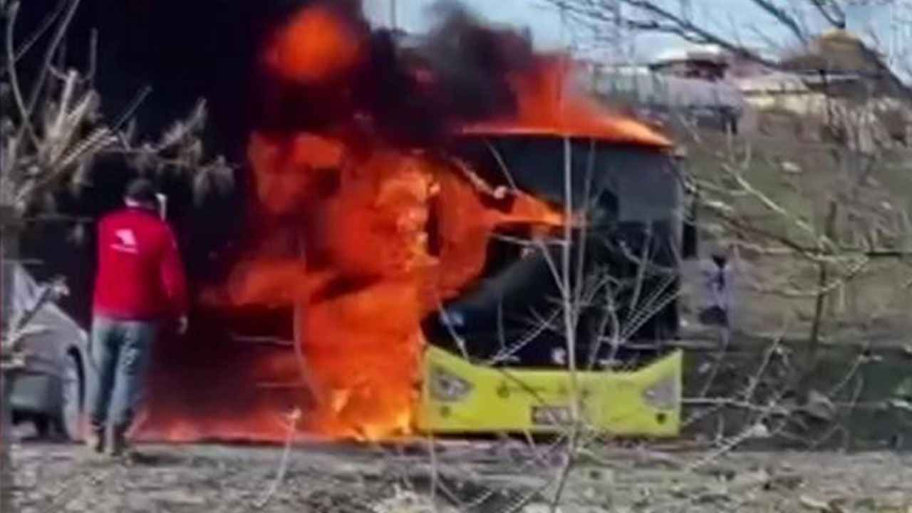 Esenyurt’ta park halinde bulunan otobüs alev topuna döndü. İETT garajında sefere çıkmak için bekleyen otobüsün motor kısmında yangın çıkarken, araç kısa sürede kullanılamaz hale geldi.