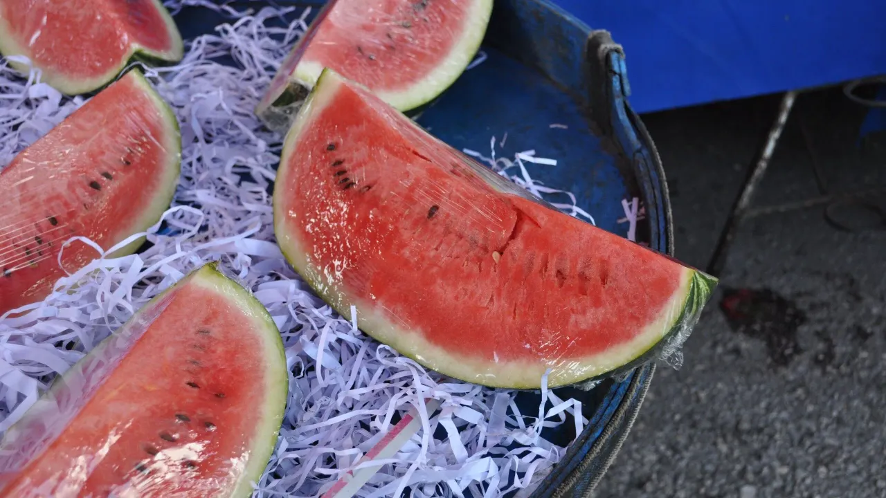 Görüntülerde, esnafın karpuzların iç kısmına pancar suyu sürerek rengini parlattığı görülüyor.