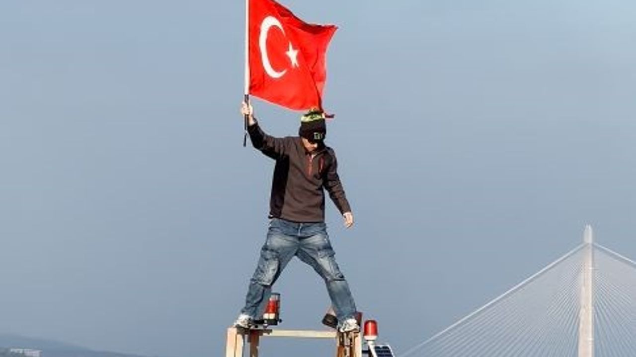 Parkur sporcusu Pavel Smirnov, Bolu’da yaşanan otel yangınında hayatını kaybedenlerin anısına anlamlı bir eylem gerçekleştirdi. Avrupa ve Anadolu yakasını birbirine bağlayan 150 metre yüksekliğindeki elektrik iletim kulesine tırmanarak Türk bayrağı...