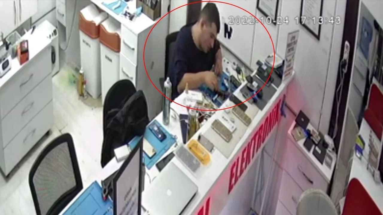 Kocaeli'nin İzmit ilçesinde tamire getirilen cep telefonu durduğu yerde alev aldı. Telefonu yere atıp, üzerini kapatan teknisyenin elinde yanıklar oluşurken, o anlar ise saniye saniye güvenlik kamerasına yansıdı.