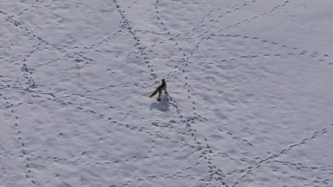 Tilkilerin karla kaplı arazide fare avı kamerada