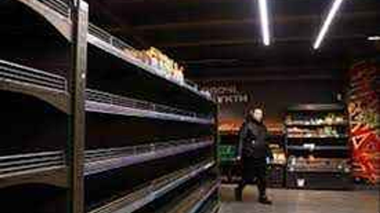 Ukrayna'nın Bucha kentinde halk, Rusya'nın bombardımanları sırasında hasar gören ve kısmen yıkılan markette bozulmamış gıda ve temel ihtiyaç ürünleri aradı.