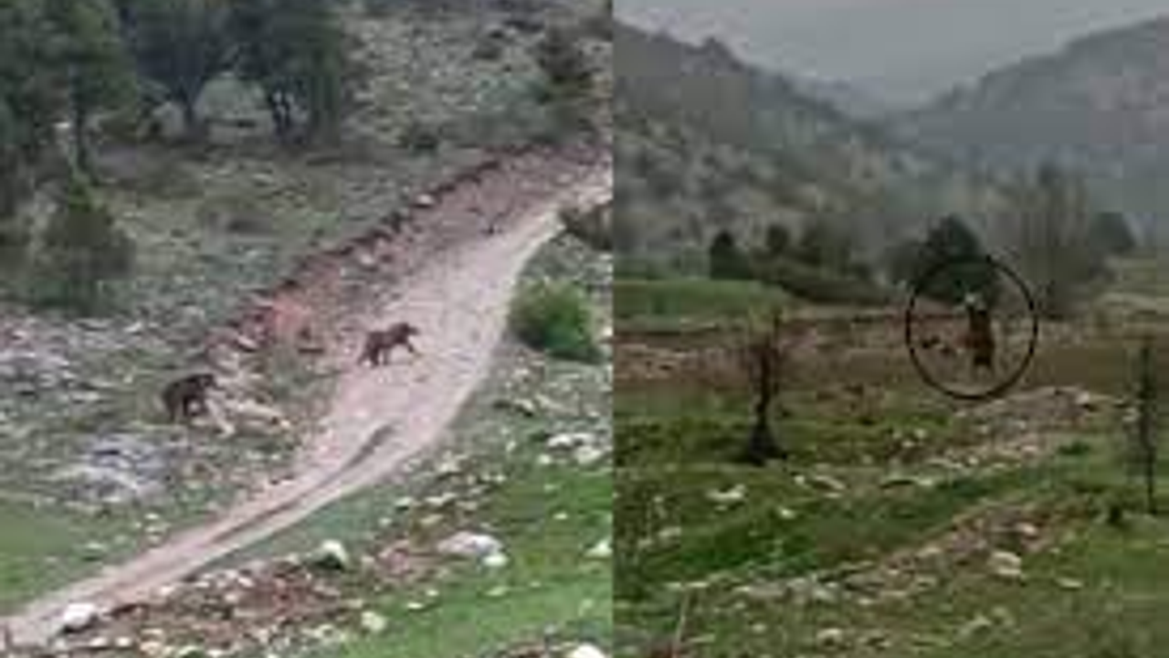 Sivas’ın Gemerek ilçesinde yerleşim yeri yakınına kadar inen iki ayı, cep telefonu kamerasıyla kaydedildi.