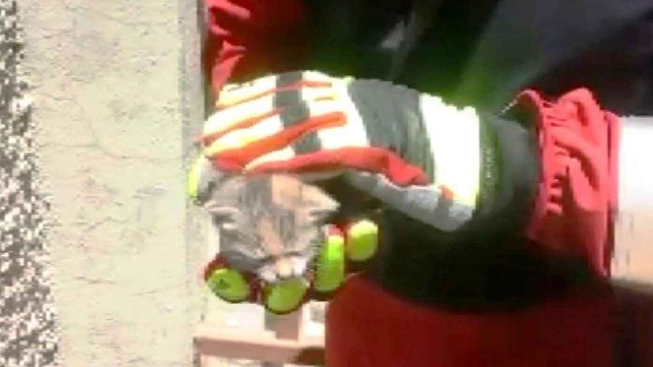 Muğla’nın Bodrum ilçesinde bir evin bacasının içine düşen yavru kedi duvar kırılarak kurtarıldı.