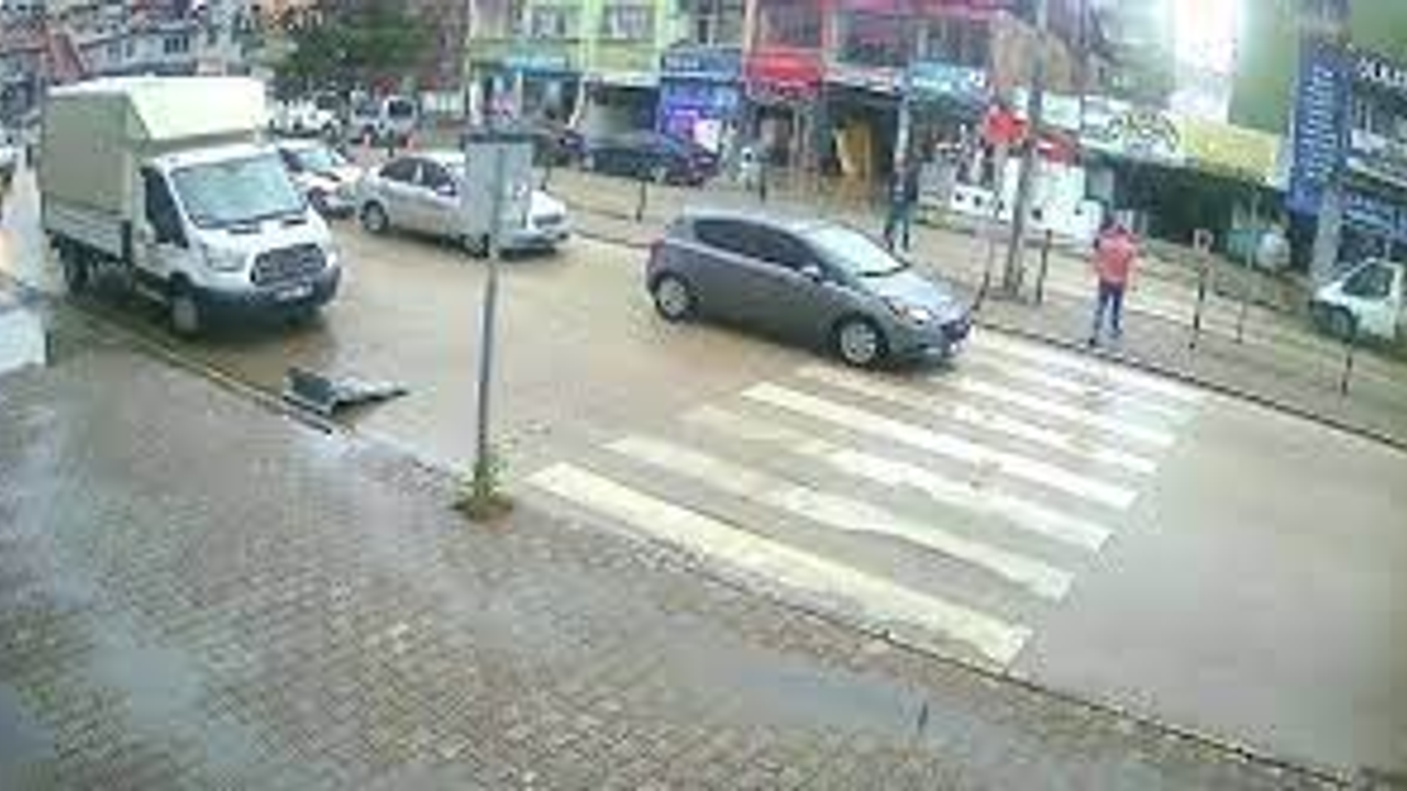 Yayaya yol veren otomobile çarpma anları kameraya yansıdı