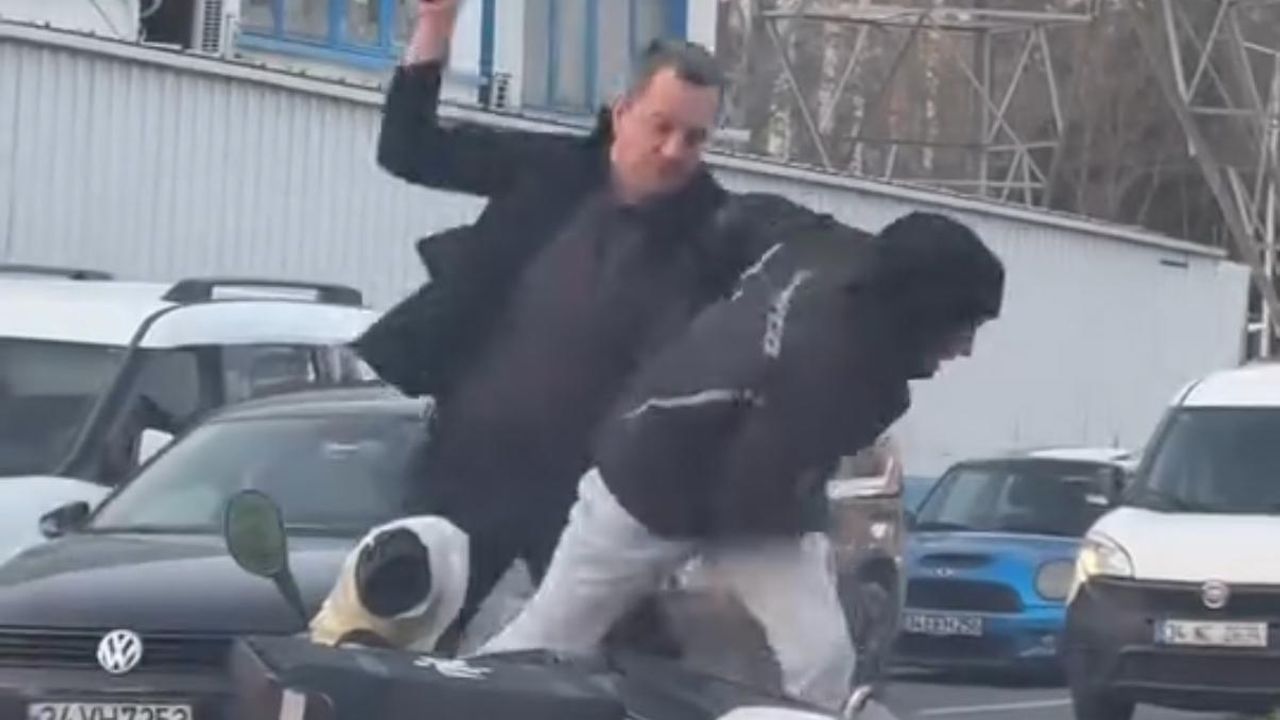Yolun ortasında motokurye ve otomobil arasında coplu kavga gerçekleşti.