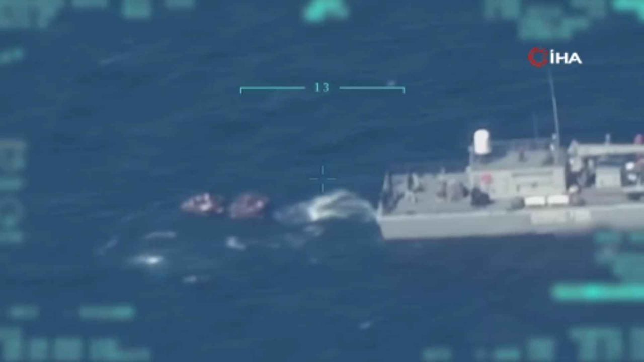 Yunanistan'ın düzensiz göçmenleri Türk kara sularına ittiği anlar İHA kamerasında