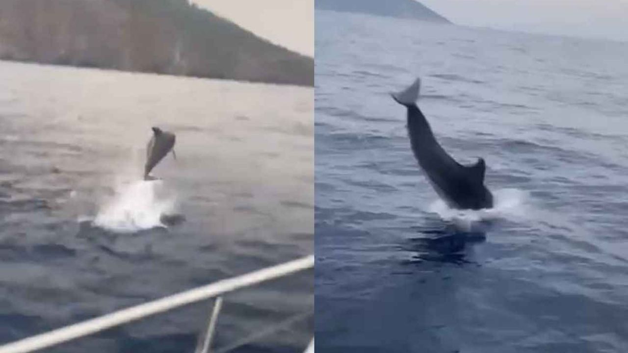 Kumluca ilçesi Adrasan açıklarında bir yunusun tekneye eşlik ettiği anlar tekne sahibi tarafından görüntülendi. Adeta tekne ile yarışan yunus, bir an olsun teknenin yanından ayrılmadı. Tekne ile birlikte bata çıka...