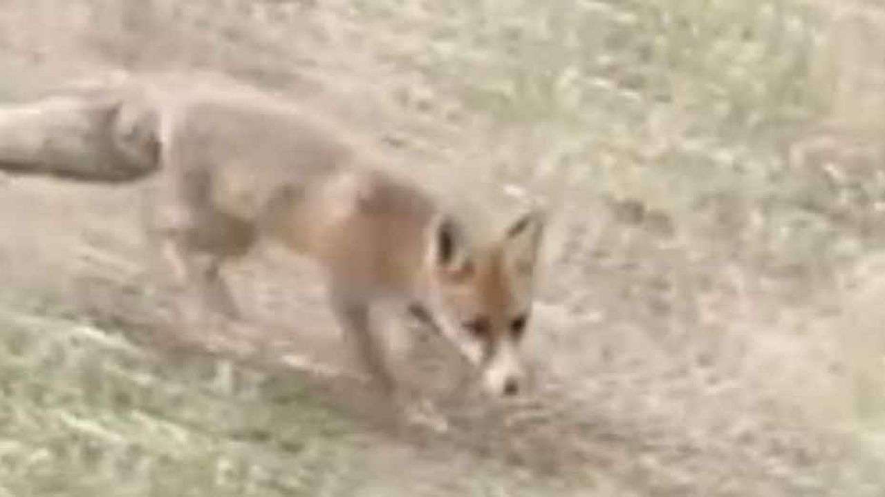 Yiyecek arayan tilkiye nöbet tutan polisten şefkat
