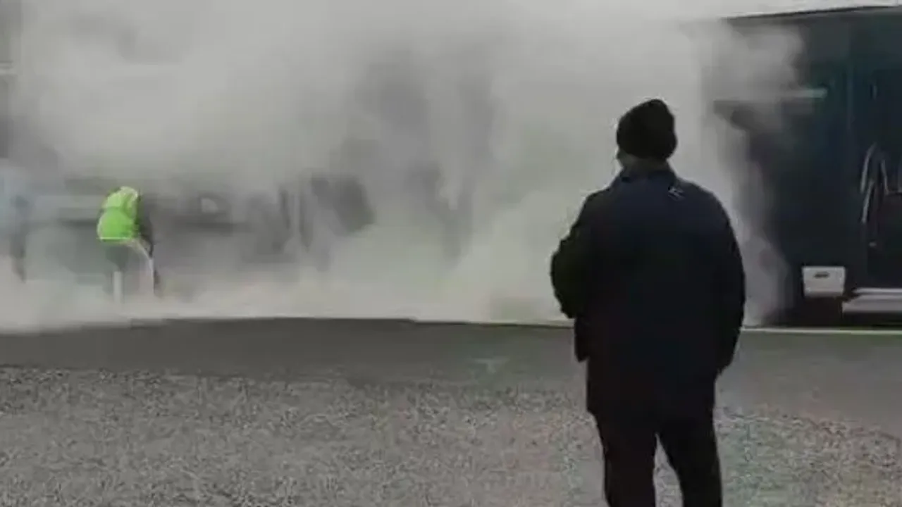Durakta bulunan görevliler tarafından dumanların yükseldiği metrobüse yangın tüpüyle müdahale edildi. Metrobüsten yükselen dumanlar ise çevredeki bir vatandaşın cep telefonu kamerasına yansıdı. Görüntülerde metrobüsten dumanların yükseldiği ve görevlilerin yangın tüpüyle müdahale ettiği görüldü