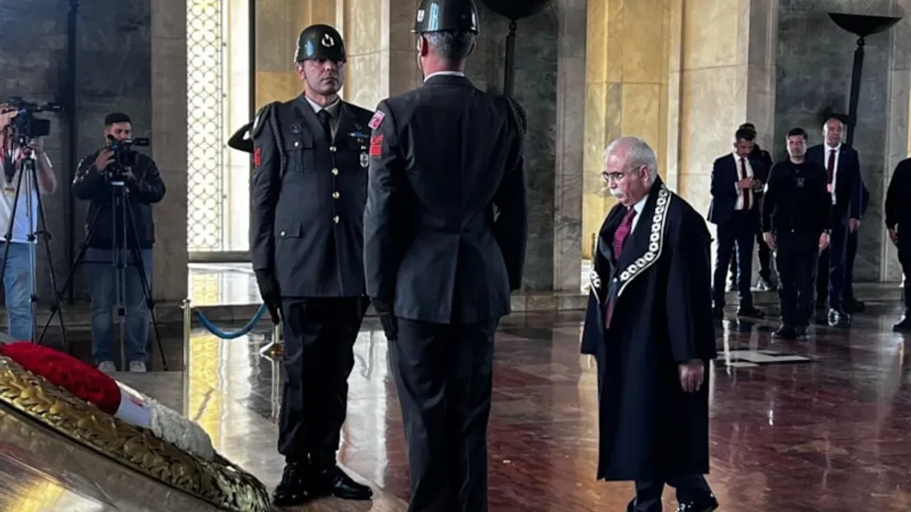 AYM Başkanı Kadir Özkaya, beraberindeki başkan vekilleri, üyeler ve raportörlerle birlikte Aslanlı Yol’dan yürüyerek Gazi Mustafa Kemal Atatürk’ün mozolesine geldi.