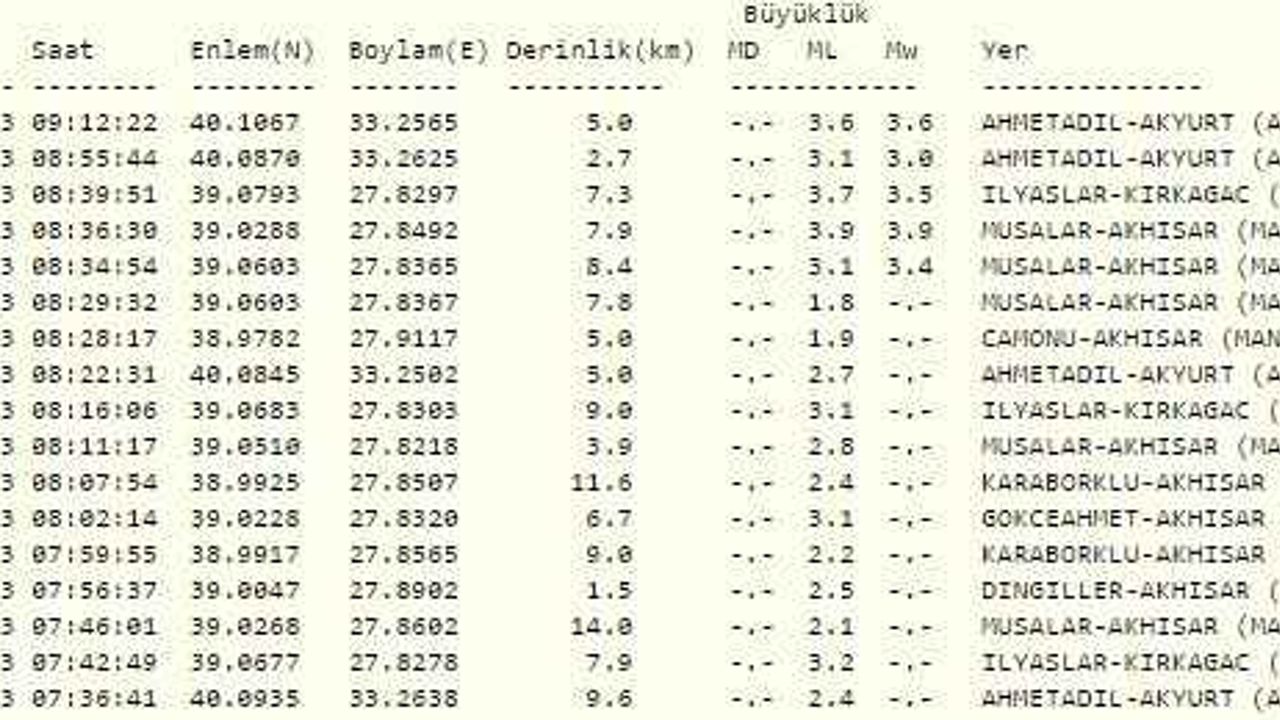 Öte yandan dün akşam saatlerinde Manisa’da meydana gelen 5,4’lük depremin artçıları da devam ediyor. Gece boyunca büyüklükleri 4,3’e kadar ulaşan çok sayıda deprem kaydedildi.