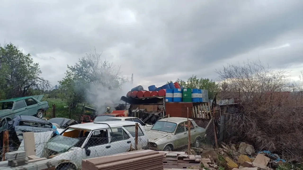 Ankara'nın Gölbaşı ilçesinde bir hurdalıkta elektrik şasesinde çıkan yangın, boş varillerin bulunduğu bir alana sıçradı.