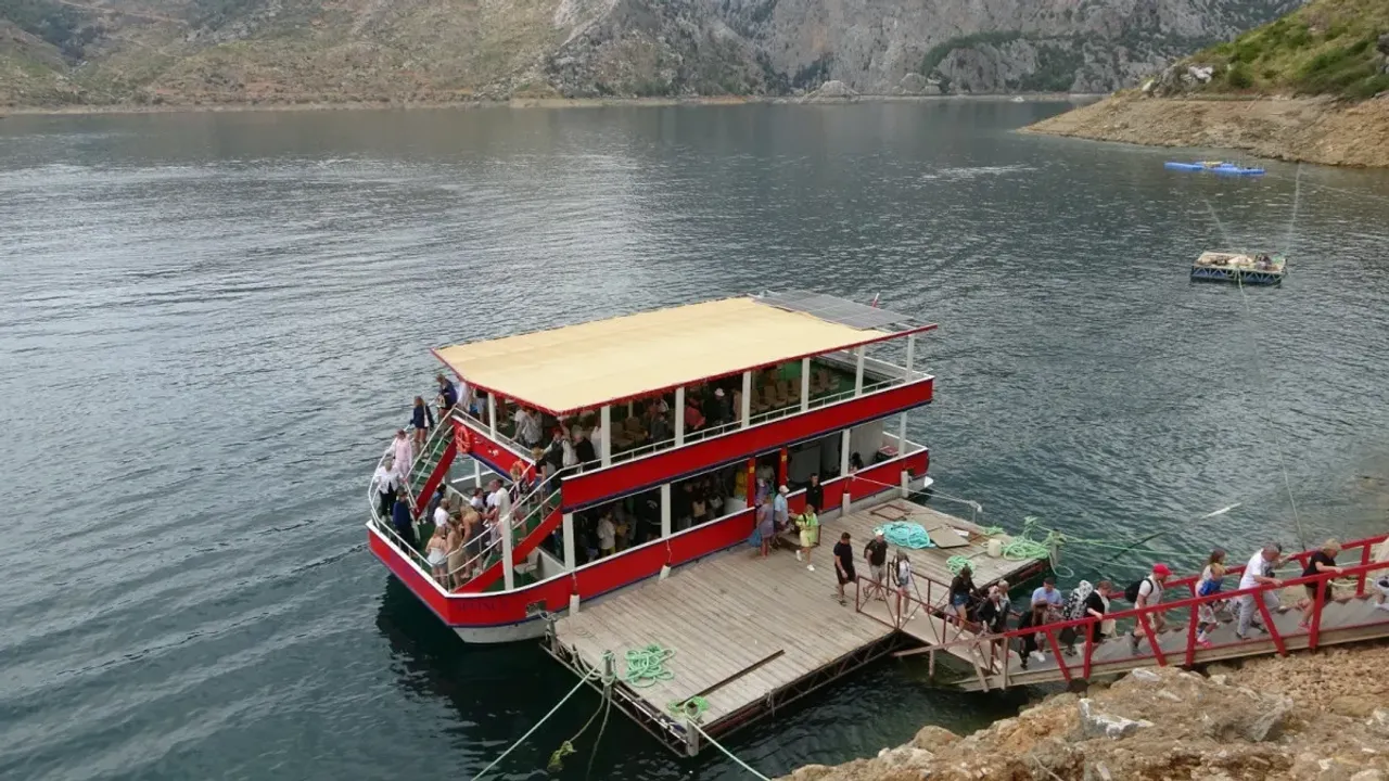 Antalya'nın Manavgat ilçesindeki Oymapınar Baraj Gölü'nde Alanya'dan tekne turuna katılan İrlandalı turist Antony Damien Smyth, kız arkadaşıyla birlikte bir koya geçti.
