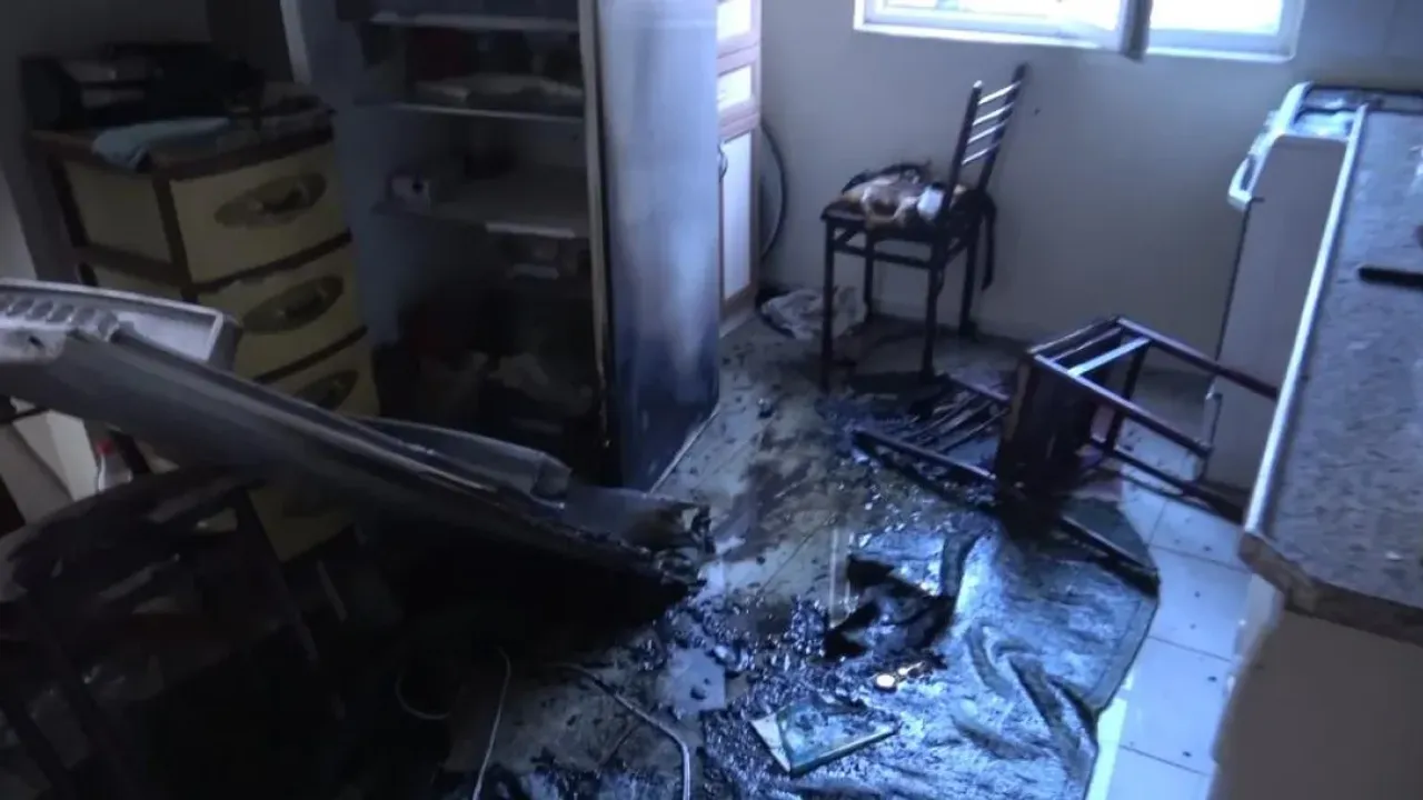 Yangın nedeniyle evin mutfak bölümde hasar oluştuğu görülürken evin oturma odası ve koridorunda ise bazı eşyanın dağıldığı ya da kırıldığı dikkati çekti.