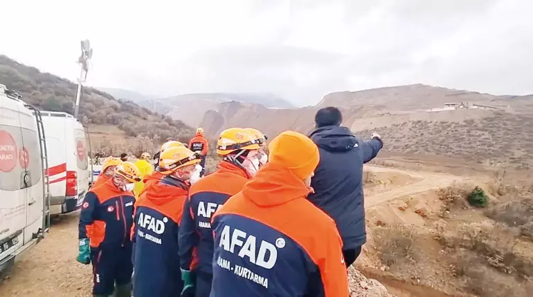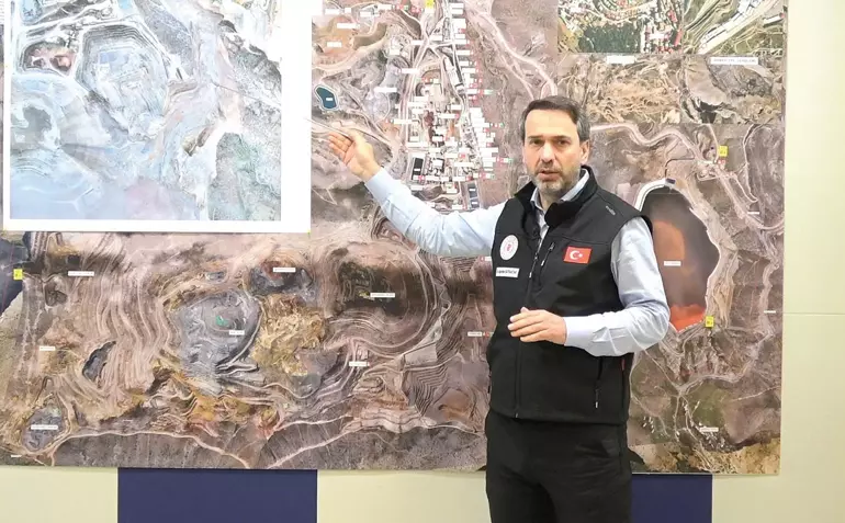 Enerji ve Tabii Kaynaklar Bakanı Alparslan Bayraktar, dünkü bilgilendirme toplantısını kriz merkezinde harita üzerinde yaptı. Toprak kaymasının meydana geldiği alanı haritada gösteren Bakan Bayraktar, 10 milyon metreküplük toprağın aktığını anlatarak, şöyle konuştu: “Bizim hesaplarımıza göre dere yatağına 5 milyon metreküplük toprağın akması söz konusu. Heyelan 2 yönlü gerçekleşiyor. Dere yatağına yüzde 80’i akıyor, bir kısmı da yan taraftaki manganez ocağının içine doğru akıyor. Burada da 1.5 milyon metreküpe yakın toprak söz konusu. 6 işçinin dere yatağına gelen büyük toprak alanında, 3 kardeşimizin de manganez ocağının içinde olduğunu düşünüyoruz. Çalışmalarımızı o bölgeye yoğunlaştırmış durumdayız. Son 24 saat arama - kurtarmayla alakalı özellikle manganez ocağındaki 3 çalışanımız için yoğun bir çalışma devam ediyor. Orada 1.5 milyon metreküpe yakın toprak var. O toprak 35 metre yüksekliğinde yani neredeyse 12 katlı bir bina yüksekliğinde. Oraya erişmeye çalışıyoruz.”