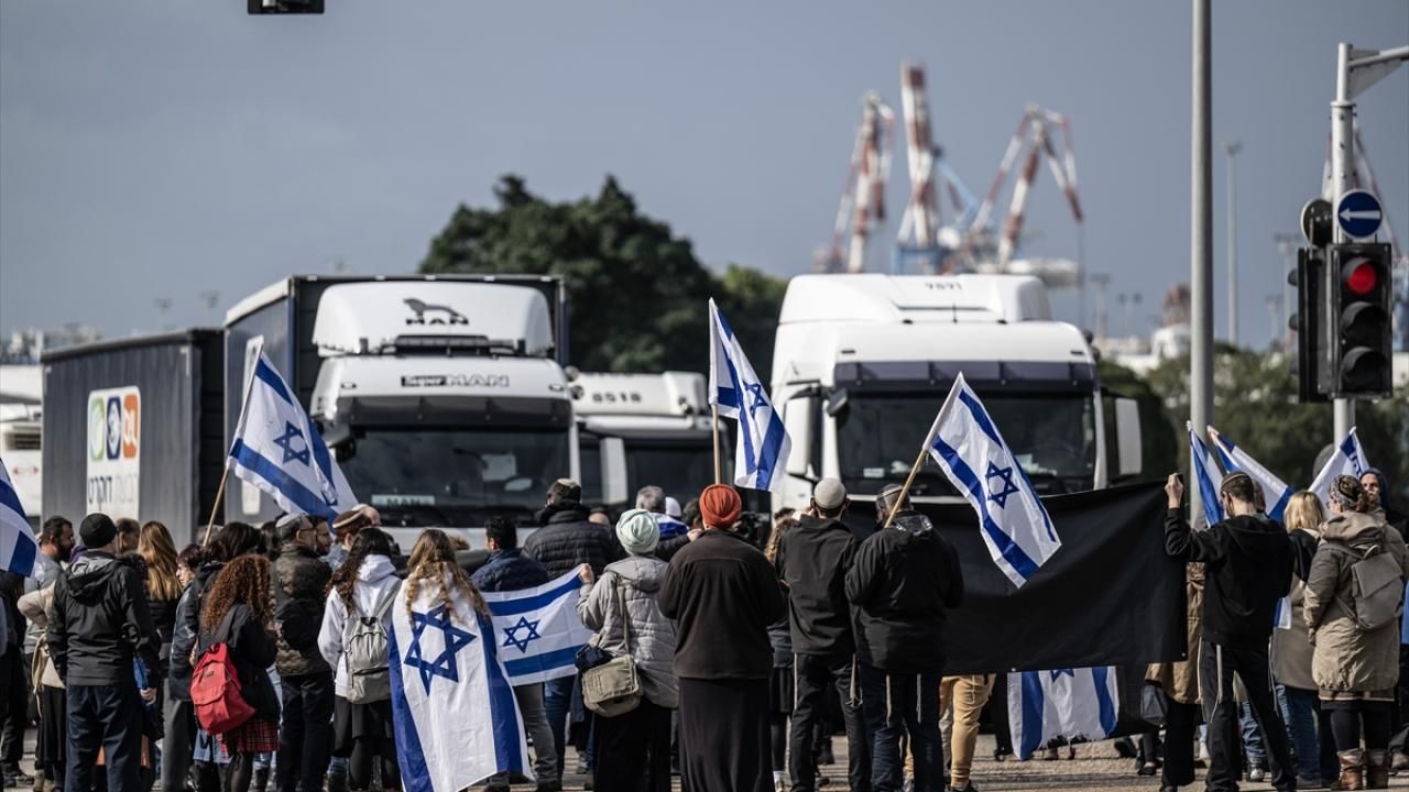 Aşırı sağcı İsraillilerin yolu kesmesi nedeniyle yardım tırlarının hareket edemediği kameraya yansıdı.