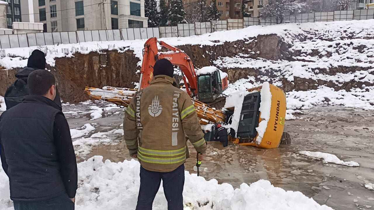 İstanbul'daki olay, Ataşehir'de inşaat alanında saat 09.00 sıralarında meydana geldi. İş makinası operatörü Kadir Yaşar, inşaat alanında aracı hareket ettirdi. İş makinası, buz tutan su birikintisine düşerek, devrildi.