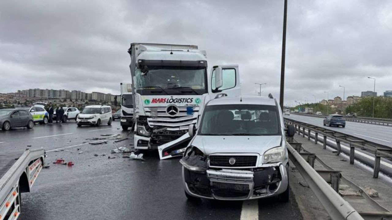 Avcılar'da TEM Otoyolu'nun Ankara istikametinde 2 tır, kamyon, hafif ticari araç ve otomobilin karıştığı zincirleme trafik kazası meydana geldi.