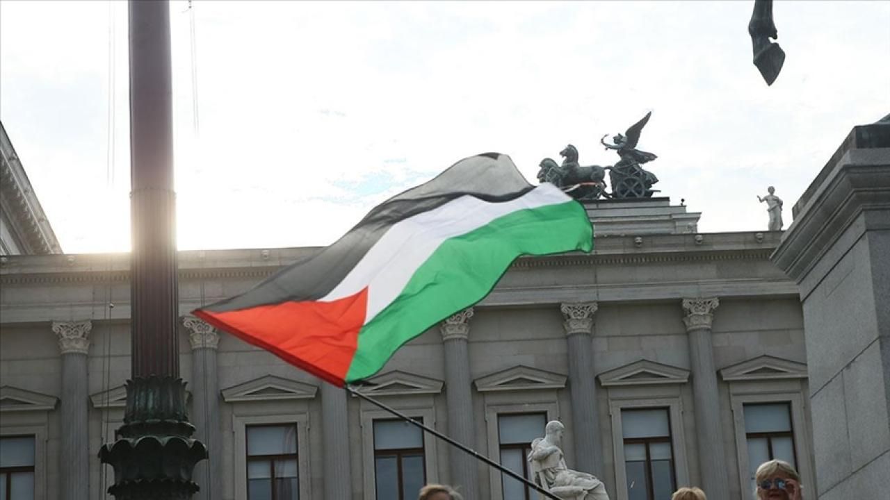 Viyana Üniversitesi'nde Filistin destekçisi grupların ortak düzenlediği gösteri kapsamında yaklaşık 100 kişi, üniversitenin ana binasının önünde toplandı.
