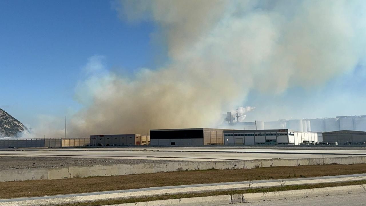 Söke Organize Sanayi Bölgesi'nde faaliyet gösteren bir kağıt fabrikasının sıkıştırılmış kağıtlarının bulunduğu açık depolama alanında henüz belirlenemeyen nedenle yangın çıktı.