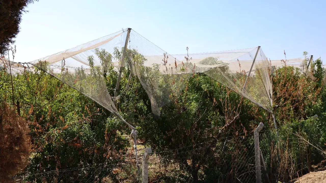 Meyve bahçelerinin üzerine kurulan özel fileler, dolu tanelerinin ağaçlara ulaşmasını tamamen engelliyor. Böylece üreticiler hem ürünlerini koruyor hem de verimde artış sağlıyor. Üreticiler, sistemi “ağaçların doğal sigortası” olarak tanımlıyor.