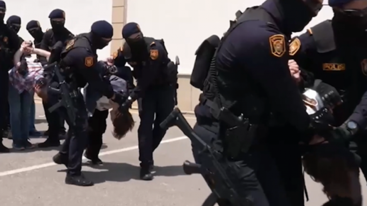 Sosyal medyada, ters kelepçe takılan şüphelilerin polis araçlarına bindirilerek götürülmesine ilişkin görüntüler yer aldı.