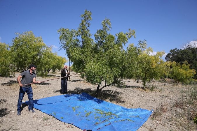 Bir sonbahar meyvesi olan hünnap, ağaçların altına serilen örtülere dallardan çırpılan meyvelerin düşürülmesiyle hasat ediliyor.