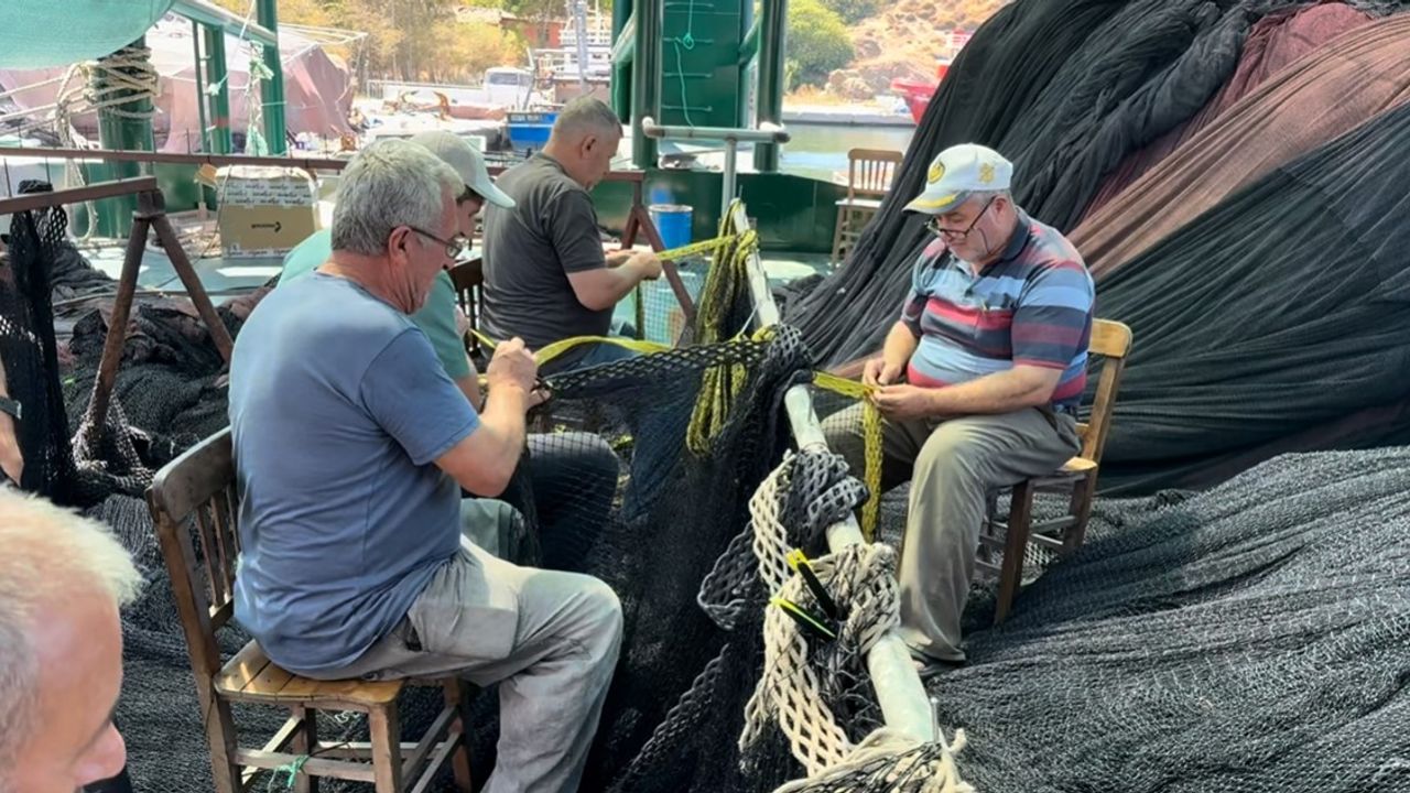 Tayfalar, denize açılmadan önce ağlarını onararak avlanmaya uygun hale getirmek için son düzenlemeleri yapıyor.