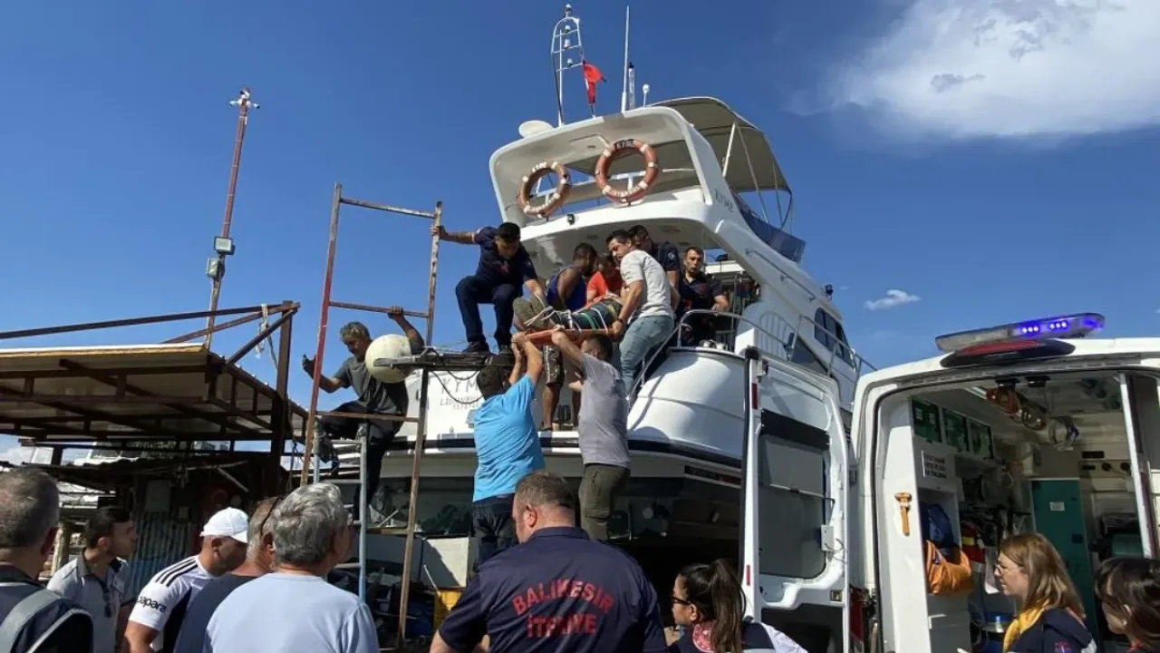 Balıkesir'in Ayvalık ilçesinde karada onarım yapılan lüks yatın ikinci katından makine bölümüne bir şahsın düştüğü bilgisine ulaşan sağlık, itfaiye ve polis ekipleri kısa sürede olay yerine ulaştı.