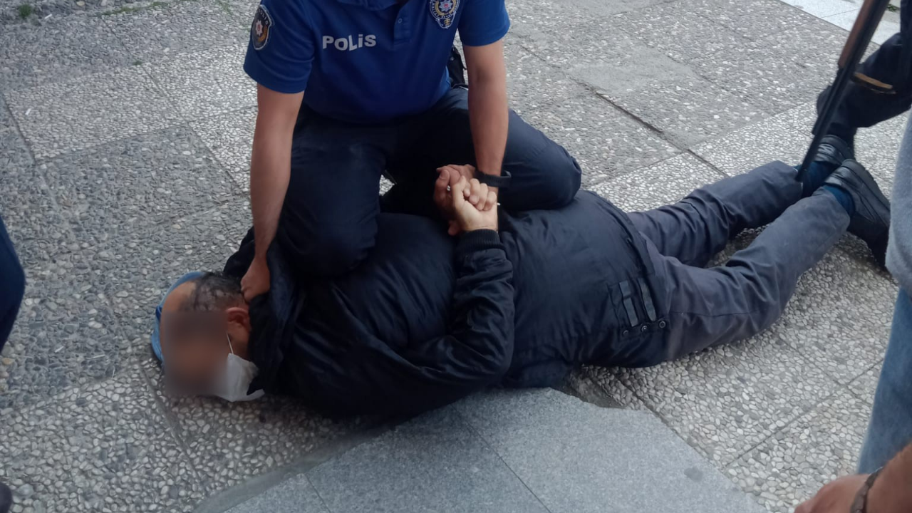 Bankanın dışarısını çıkarak tüfeğini elinden bırakan Selim T., polis ekipleri tarafından gözaltına alındı.