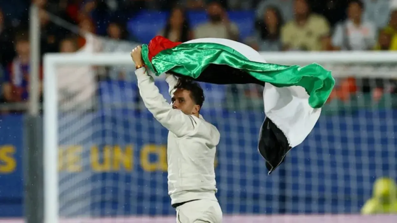 Bir taraftar, maç sırasında sahaya Filistin bayrağıyla girerek, İsrail'in Gazze'de yaptığı soykırımı protesto etti.