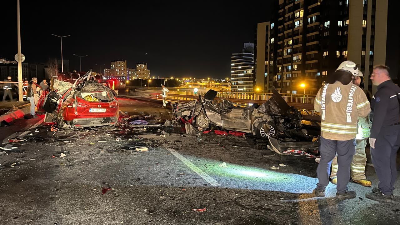 Başakşehir'de feci bir kaza meydana geldi. Karşı şeride geçen araç bir başka otomobille çarpıştı. Kazada 4 kişi hayatını kaybetti.