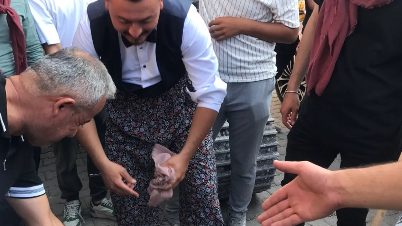 Gençlerin isteğini kırmayan damat Mert Fidan, her gün yaptığı işi bu kez en mutlu gününde gerçekleştirdi.