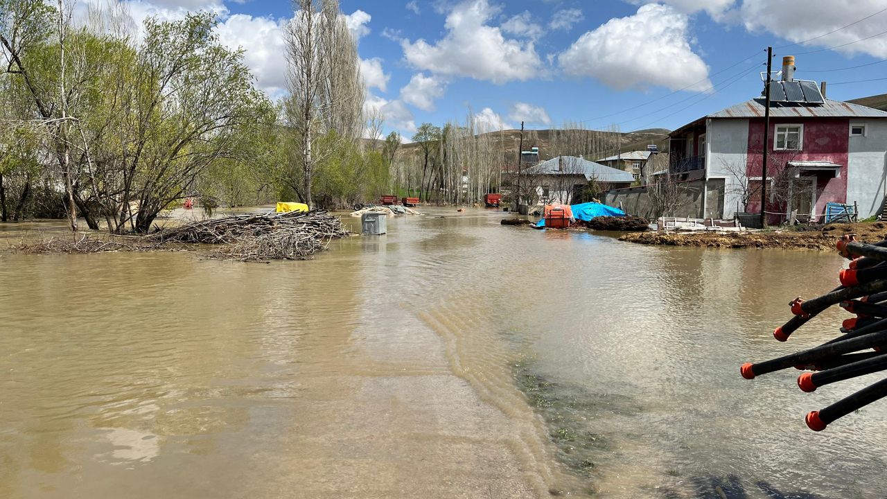 Bununla birlikte, cep telefonu kamerasına yansıyan görüntülerde köyün bir kısmının su altında kaldığı, taşan suların yerleşim alanına doğru yükselerek ilerlediği yer alıyor.