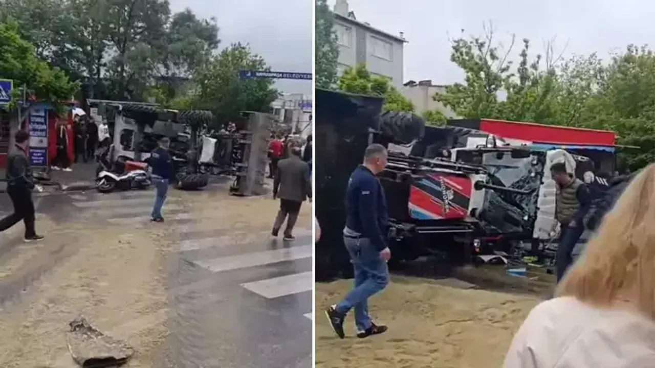 Olay yerine polis, itfaiye ve sağlık ekibi sevk edildi. Kazada devrilen iş makinesinin operatörü Sadullah Özdağ ve Motokurye Mazlum Çaçur yaralandı. Yaralılar hastaneye kaldırılırken ekiplerin çalışması sürüyor.