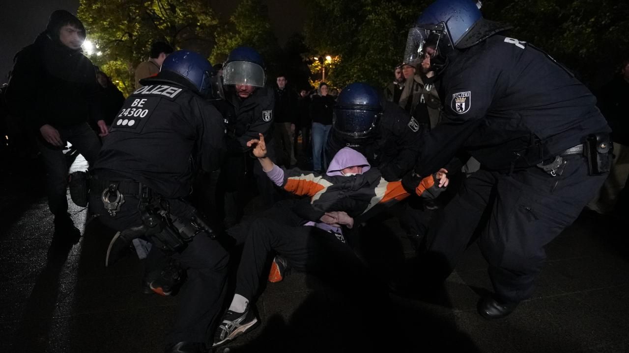 Berlin polisinin ABD merkezli X şirketinin sosyal medya platformundan yaptığı açıklamada, Neptunbrunnen Meydanı çevresinden ayrılmayan göstericilerin Toplanma Yasası'nı ihlal ettiği belirtildi.