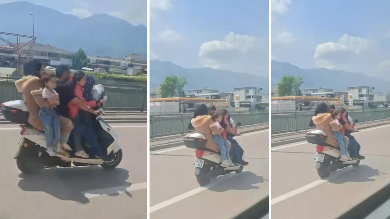 Bursa’nın Yıldırım ilçesi Ankara Yolu Caddesi’nde çocuklarında bulunduğu 5 kişilik aile, tek bir motosikletle trafikte kilometrelerce seyahat etti.