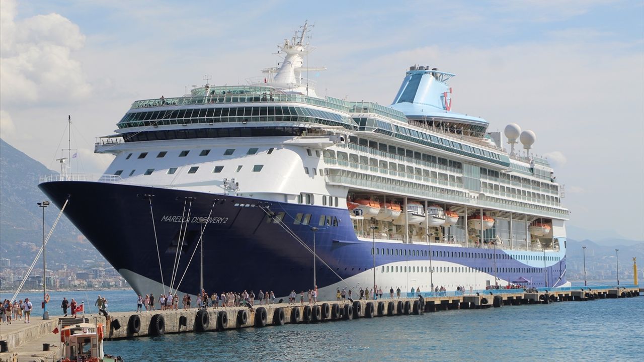Muğla'nın Bodrum ilçesinden demir aldıktan sonra rotasını Antalya'ya çeviren 264 metrelik yolcu gemisi, sabah Alanya Limanı'na yanaştırıldı.