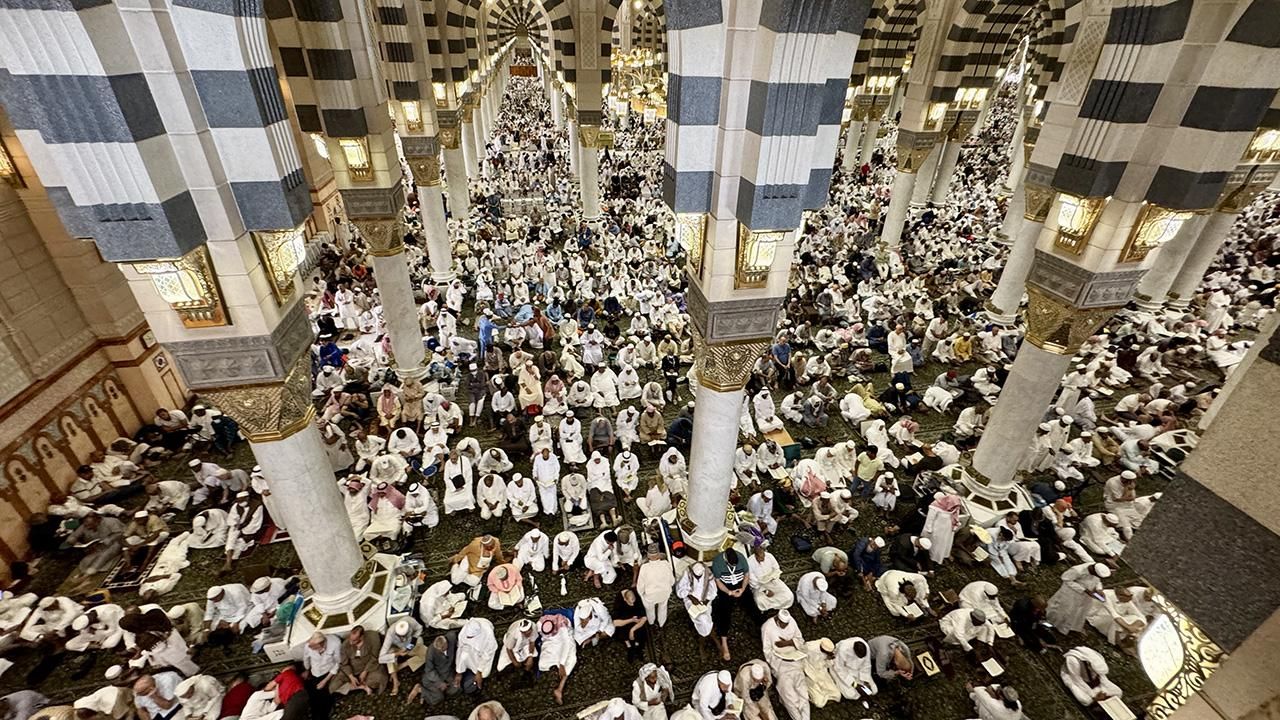 Cuma namazı vaktinin yaklaşmasıyla Mescid-i Nebevi ve çevresinde yoğunluk yaşanırken, Mescid-i Nebevi'nin içinde ve çevresinde yüz binlerce hacı, saf tutarak cuma namazını kıldı.