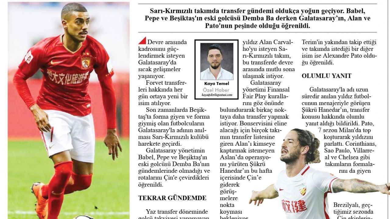 Öte yandan Diriliş Postası Gazetesi Pato ile uzun süredir görüşüldüğünü ve teknik direktör Fatih Terim’in yıldız futbolcuyu istediğini 20 Aralık 2018’de duyurmuştu.