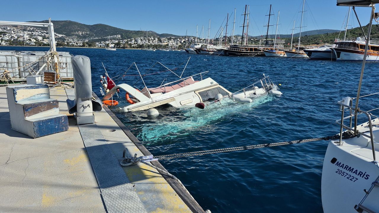 Gümbet İskelesi'ne bağlı bulunan 15 metre uzunluğundaki bir tekne, fırtına dolayısıyla iskeleye çarpıp hasar gördü. Hasar alan tekne, kısa sürede batmaya başladı.