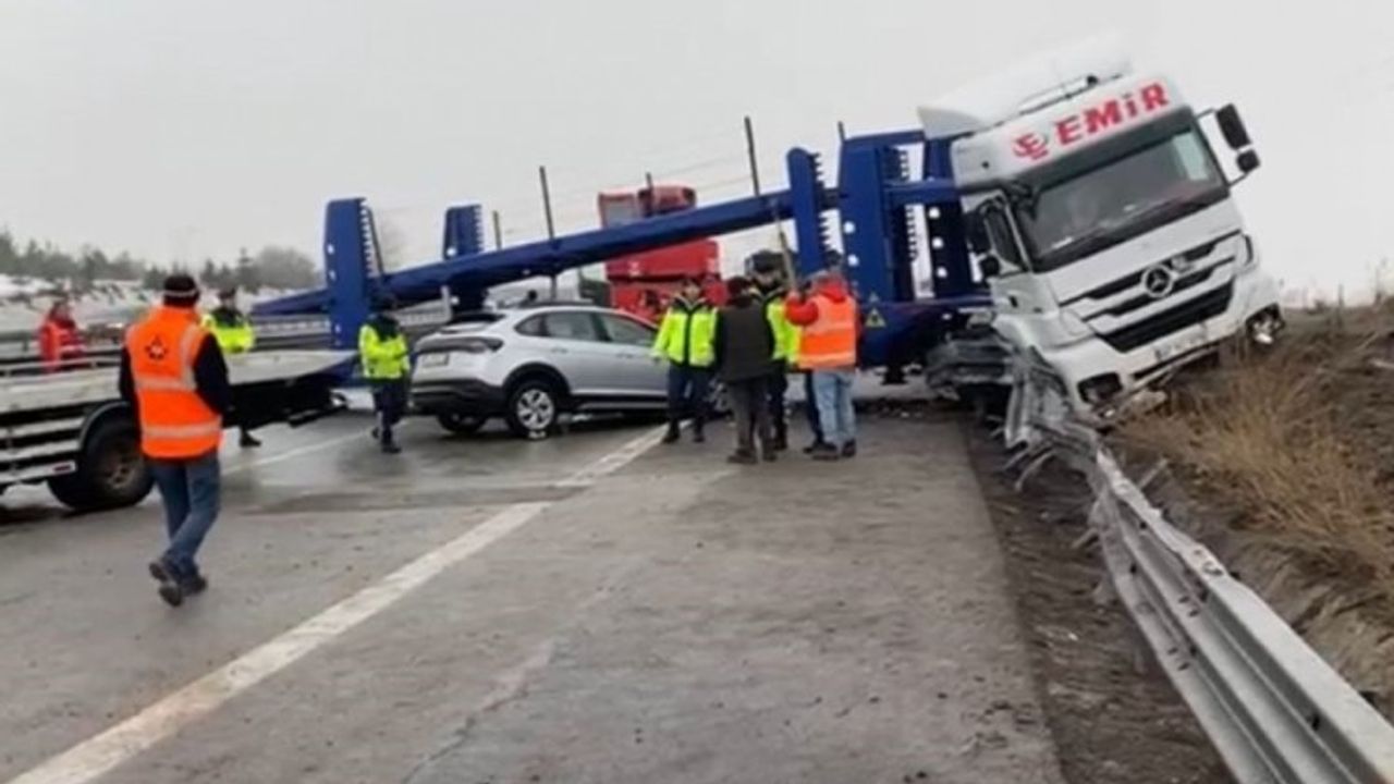 Kaza, TEM Otoyolu'nun Bolu geçişinde Yeniçağa ilçesi mevkiinde meydana geldi. Edinilen bilgiye göre, İstanbul istikametinde seyreden M.Ş.Ç. yönetimindeki 47 PC 978 plakalı tır, sürücüsünün direksiyon hakimiyetini kaybetmesiyle yoldan çıkarak bariyerlere çarptı. Aynı istikamette seyreden F.K. idaresindeki 34 GOH 341 plakalı otomobil duramayarak tırın dorsesine çarptı. Kazada otomobil sürücüsü yaralandı.