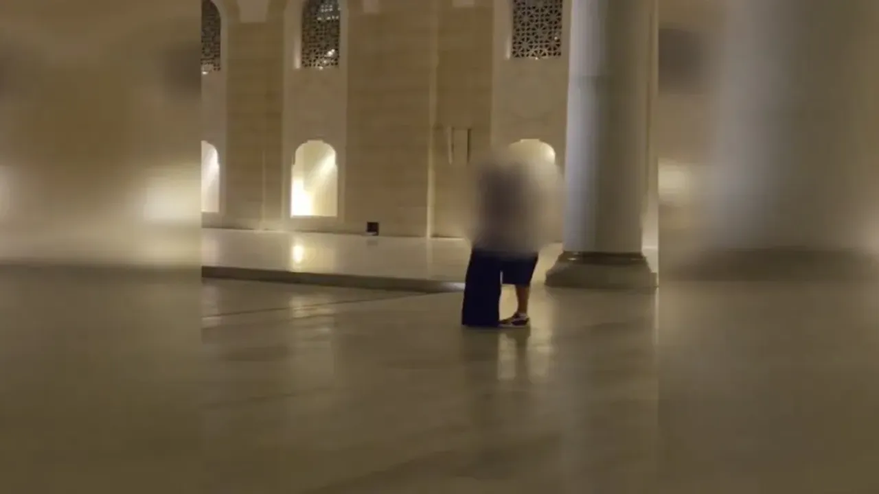 Video, fotoğraf çekiyorlar. Hanımefendinin kıyafeti uygun değil. Güvenlik müdahale etmiyor. Buraya mini etekli, dekolteli insanlar geliyor. Ben buradan Diyanet'e sormak istiyorum. Neden böyle manzaralar var camide.