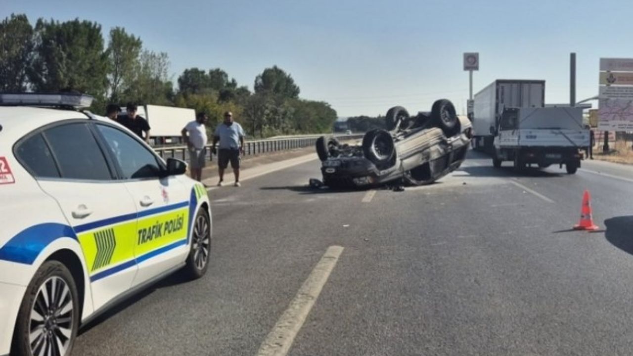 Ters dönen araçta sürücü E.A. ve yolcu B.Ö, yaralandı.