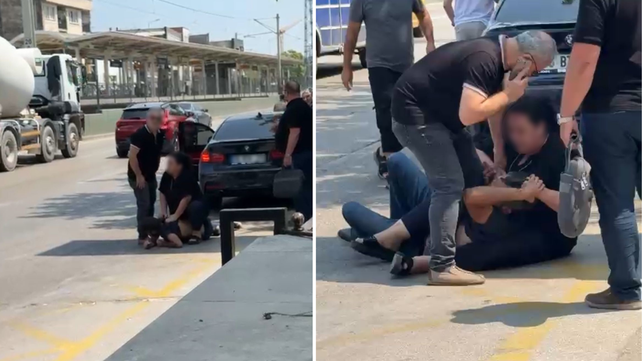Eski kocasını cadde ortasında yakalayan kadın, dolandırıldığını ileri sürerek darp etmeye başladı.