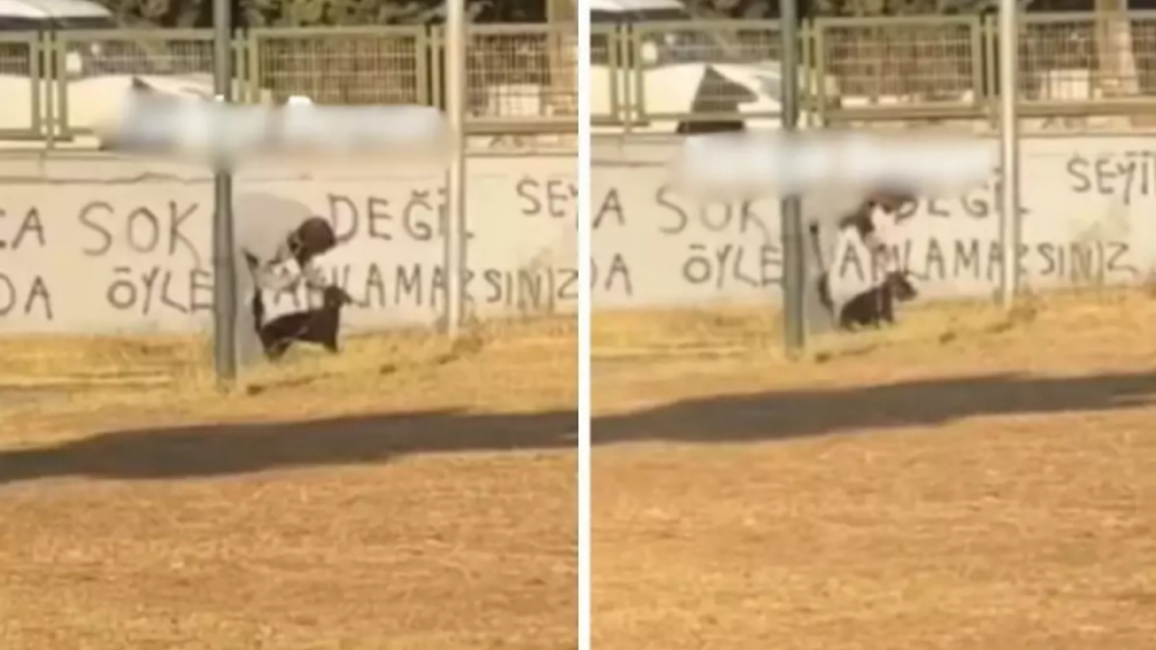 Bursa'da çekildiği belirtilen ve sosyal medyada yer alan görüntüler, yürekleri sızlattı. Edinilen bilgilere göre, boş bir arazide bir şahıs köpeğini gezdirmeye çıkardı.