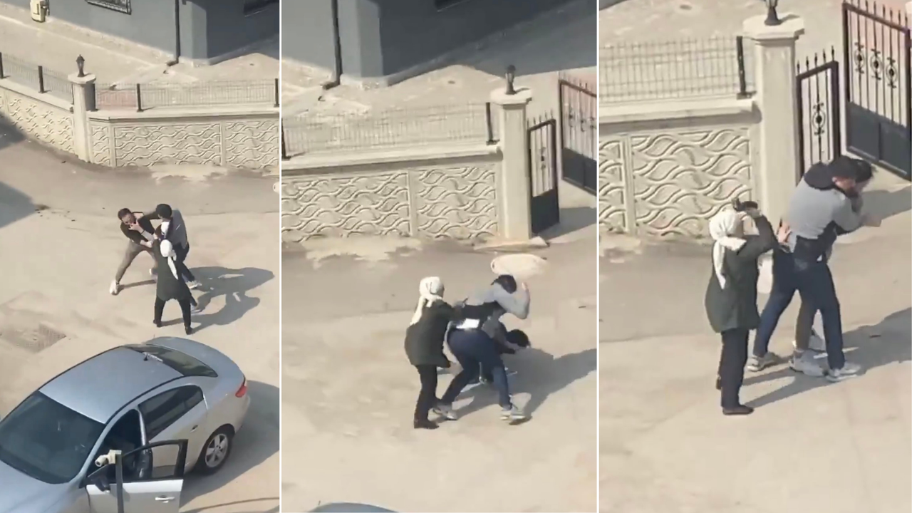 Sopalar, yumruklar ve terliklerin havada uçuştuğu kavga, çevredeki vatandaşların araya girmesiyle güçlükle son buldu.