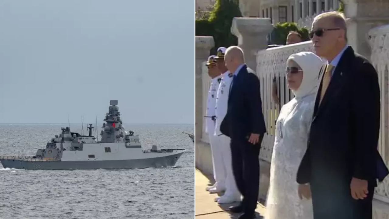 Türk donanması, İstanbul Boğazı'nda geçit töreni gerçekleştiriyor. Tören TEKNOFEST Mavi Vatan kapsamında yapılıyor.